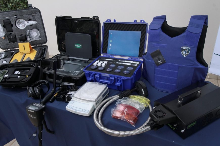 Para a Politec, serão destinadas dez maletas de levantamento e coleta de impressões digitais, e outras dez maletas para exames periciais em local de crime; 12 fechaduras digitais e 11 balanças semi-analíticas; dez detectores de metais e um microscópio eletrônico