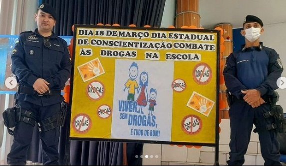 Durante as palestras, os instrutores do Proerd no 7º BPM, 3º sargento PM Caiojunias e cabo PM Paulo César, alertaram as crianças e os adolescentes para os perigos que as drogas causam na saúde do ser humano e a sociedade, bem como a relação dessas drogas com o crescente número de adolescentes envolvidos na criminalidade.