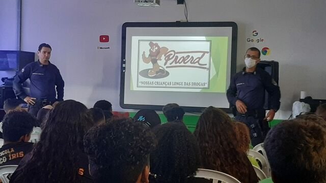 Os instrutores do Proerd no 7º BPM, 3º sargento PM Caiojunias e aluno sargento PM Paulo César, em suas palestras, alertaram as crianças e os adolescentes sobre os perigos que as drogas causam na saúde do ser humano e na sociedade, a importância da disciplina e de ser um bom cidadão.