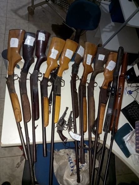 Conforme as informações registradas no boletim de ocorrência, no total foram apreendidas 31 buchas de recarga de cartucho, 184 munições de diversos calibres (12, 16, 20, 22, 28, 32 e 36), duas armas de pressão, pólvora, espoleta, chumbo, peças, acessórios para customização, além de 11 armas de fogo (nove espingardas de diversos calibres, um revólver e uma garrucha), sendo algumas já produzidas e outras em processo de criação.