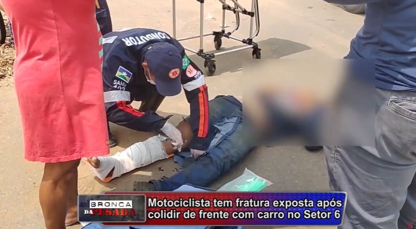 A colisão envolvendo uma moto e um carro preta ocorreu, no cruzamento da sexta rua no Setor 06 de Ariquemes. O motociclista foi socorrido pelo SAMU ao Hospital Regional com uma fratura na perna. Confira a reportagem que foi ao ar pelo Canal 35.1.