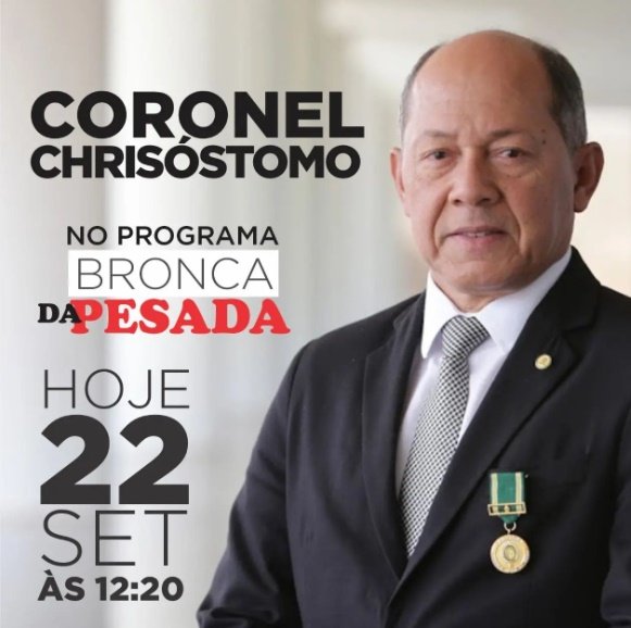 CORONEL CHRISÓSTOMO será entrevistado no Canal 35.1 nesta quinta-feira (20) às 12:25hs - CORONEL CHRISÓSTOMO Candidato a Deputado Federal