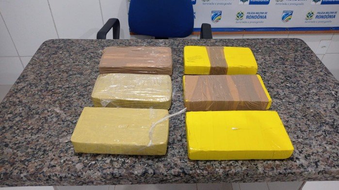Durante a revista pessoal nada de ilícito foi encontrado com o motorista, mas durante buscas no veículo, foram encontrados, na parte frontal, abaixo do capô, seis tabletes de cocaína e crack, que totalizaram aproximadamente seis quilos.