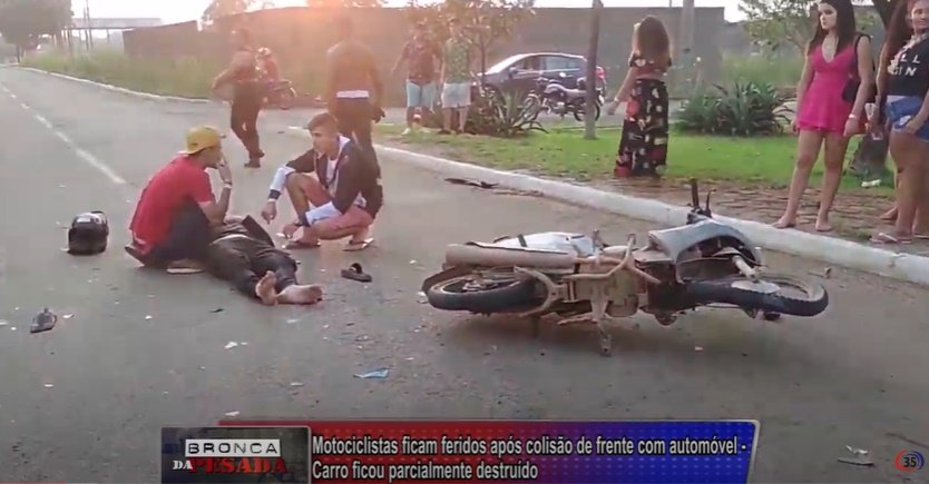 Duas pessoas ficaram feridas depois de batida frontal entre uma moto e um carro na Avenida Machadinho em Ariquemes. Informações que a moto e carro seguiam no mesmo sentido, quando o motociclista fez o contorno na pista para voltar batendo de frente. As vitimas foram socorridas pelo SAMU ao hospital do Hospital Regional. Confira a reportagem que foi ao ar pelo Canal 35.1.