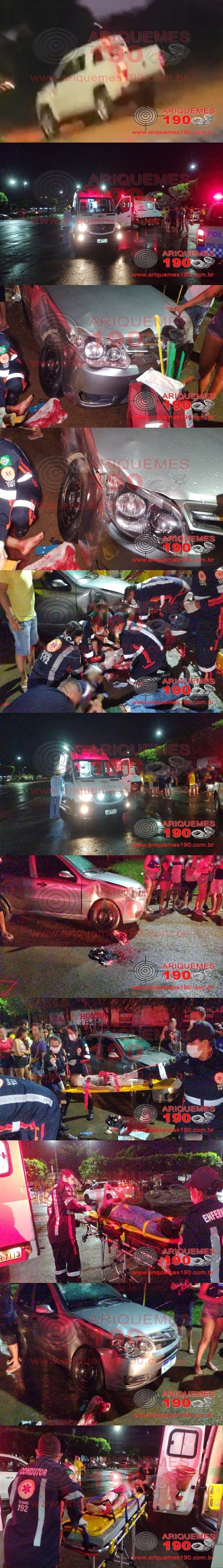 O condutor de uma camionete branca perdeu o controle e atropelou uma mulher e uma criança no espaço Alternativo de Ariquemes.