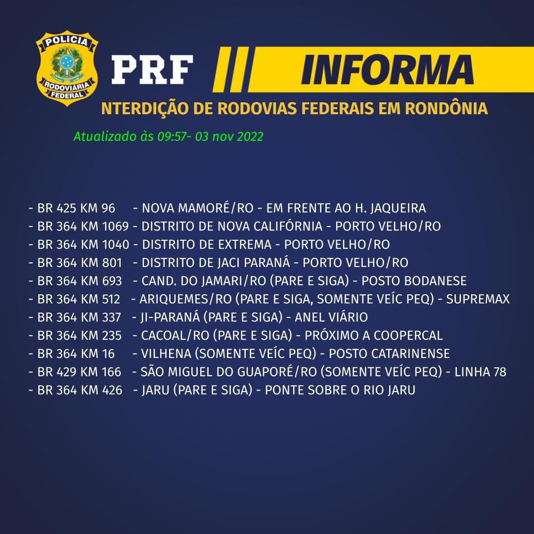 RONDÔNIA: PRF anuncia uso de Policiamento de Choque e da Força para desobstrução coercitiva de vias do Estado