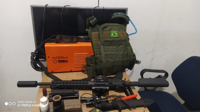 Policiais passaram a monitorar a residência onde havia informações que estariam os acusados de cometer o roubo, que no momento foi visualizado um veículo parando na frente da referida residência e descarregando vários objetos sendo uma televisão, uma máquina de solda e enrolada em um lençol um objeto aparentando pelas características uma arma longa. Que após alguns instantes a polícia foi informada de um furto a residência, na qual anunciou os objetos visualizados descarregados na residência.