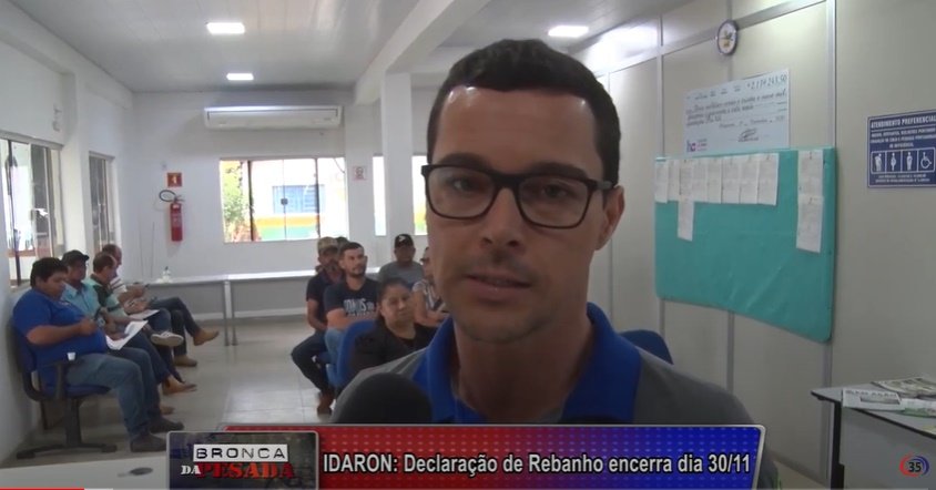 O veterinário da Idaron de Ariquemes Murilo Freitas concedeue entrevista ao Canal 35.1, e informou que os produtores terão até o dia 30 de novembro para fazer a declaração, lembrando que pode ser utilizada a internet, no site da Agência (www.idaron.ro.gov.br) ou as Unidades Locais de Sanidade Animal e Vegetal (Ulsav’s), em todo o Estado. Com o foco nas produções de bovinos, bubalinos, suínos, caprinos e ovinos (animais suscetíveis à febre aftosa), além de equídeos e aves, o Governo de Rondônia, por meio da Agência de Defesa Sanitária Agrosilvopastoril do Estado – Idaron deu início à segunda etapa da campanha de declaração obrigatória de rebanhos. Vale lembrar que, a emissão da Guia de Trânsito Animal passa a estar vinculada à declaração de rebanhos. Ou seja, o produtor só poderá emitir GTA depois que regularizar o rebanho junto à Idaron. Confira a entrevista.