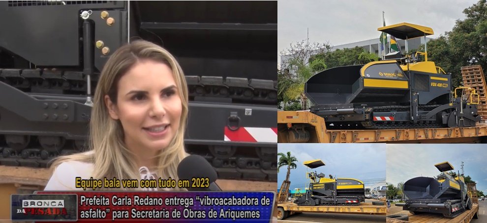 Assim que assumiu a prefeitura de Ariquemes, Carla Redano já havia prometido para o Secretario de Obras Baleado investimentos em maquinários para transformar o município em um canteiros de obras. Nesta quinta-feira (01), a equipe do Canal 35.1 acompanhou entrega para a Secretaria, uma vibroacabadora, este equipamento ira reforçar e qualificar o trabalho de pavimentações asfálticas na cidade. Carla Redano enfatizou que o equipamento que tem capacidade mínima de produção de 400 toneladas de massa asfáltica por hora, cerca de mais de 2 km por dia. O maquinário foi adquirido por meio do convênio, Nº 049/2022/PGE/DER-RO, no valor de R$ 1.600.000,00 (um milhão e seiscentos mil reais) e será utilizado para nivelamento, assentamento e revestimento final do pavimento.
