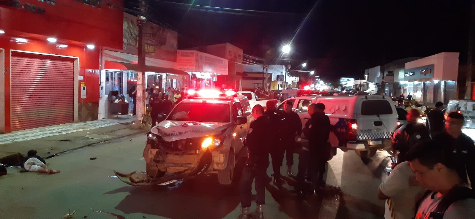 Em determinado momento os policiais solicitaram apoio para fazer o cerco e a dupla acabou batendo de frente contra uma viatura e ambos foram jogados longe ficando com lesões e fraturas pelo corpo. O condutor da moto disse que fugiu por que não possui habilitação e a documentação da moto estava atrasado.