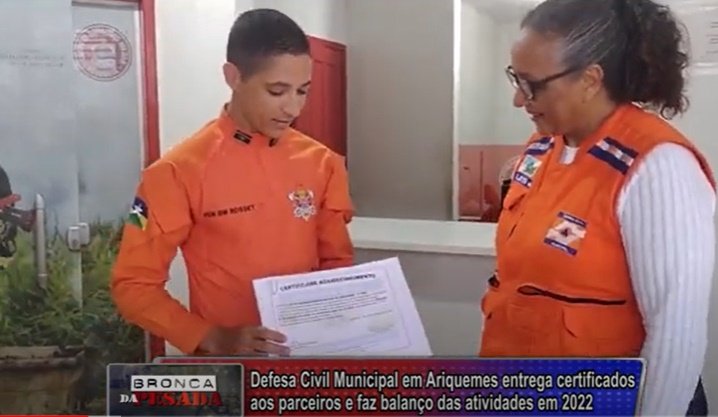 A principal atribuição da Defesa Civil é conhecer e identificar os riscos de desastres na região, através do mapeamento de riscos e preparação para o enfrentamento de adversidades. Vale lembrar que todas as cidades estão sujeitas a desastres naturais. Em 2021 o Município de Ariquemes enfrentou problemas com as enchentes, e a Defesa Civil teve um papel importante, como em outras situações. A Coordenadora da Defesa Civil, Elis Regina, realizou a entrega de certificados aos parceiros e fez um balanço das atividades em 2022. Confira Reportagem que foi ao ar no Canal 35.1.