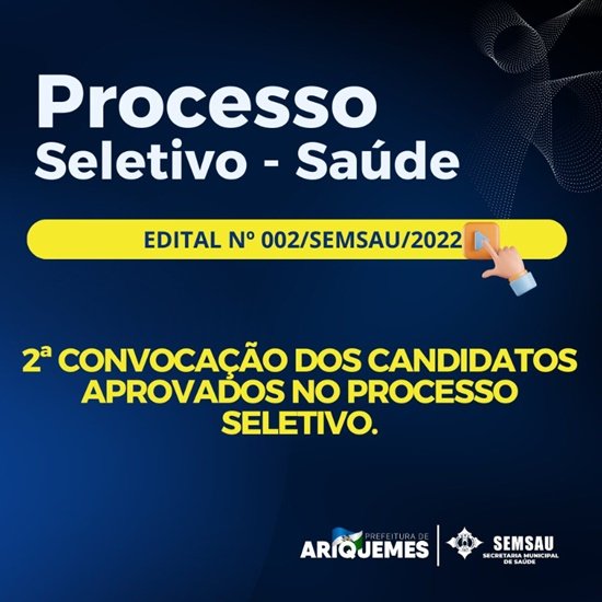A Prefeitura de Ariquemes, através da Secretaria Municipal de Saúde - SEMSAU, divulgou nestasegunda-feira (02), a 2ª lista de convocação, para o Processo Seletivo Simplificado.