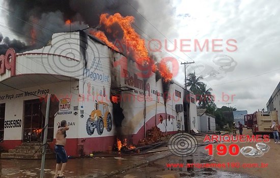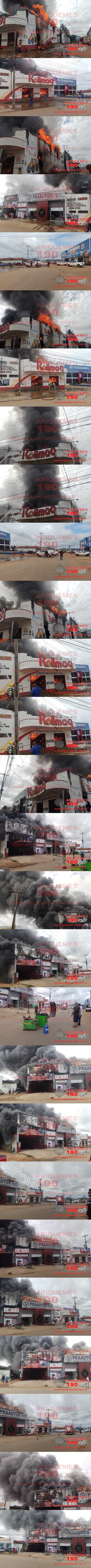 Um incêndio de grande proporções que iniciou na empresa Rolimaq, atingiu também a empresa Praautos Acessórios, neste domingo (08), empresas situadas na Avenida Canaã no Setor Industrial. Informações levantadas pelo site Ariquemes190 e Canal 35.1, a Central do Corpo de Bombeiros através do numero 193 recebeu várias ligações informando de um incêndio na empresa Rolimac. Ao chegarem no local constaram que a estrutura metálica da empresa já tinha caído, iniciando o combate ao incêndio na parte de trás da empresa, para evitar que residências fossem atingidas. De imediato os Bombeiros SGT Silvano solicitou reforço e bombeiros de folga foram acionados, como também contaram com apoio de caminhões do DER, prefeitura (SEMA e Obras) que abasteciam os caminhões do Corpo de Bombeiros. Apesar de todos esforços a empresa Praautos foi atingida pelas chamas e se alastrou, e atingiu parte de uma Auto Center ao lado. Não há informações o que ocasionou o incendiou. A Policia Militar e GCM ajudaram controlar o trânsito. Melhores informações nesta segunda-feira (Canal 35.1) a partir das 11:00hs.
