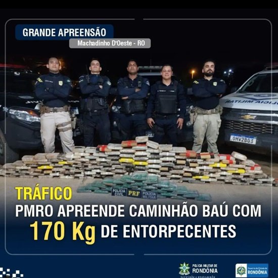 Um caminhão baú com três indíviduos foi abordado pela Polícia Militar de Rondônia (PMRO), por meio de equipes policiais militares do 8º Batalhão, com aproximadamente 170 kg de entorpecentes, sendo que a maior parte aparentemente trata-se de cocaína, na tarde de domingo, 15. O veículo foi localizado a 70km de Machadinho D'Oeste-RO na linha MA-28 a destino do distrito de Três Fronteiras- MT.