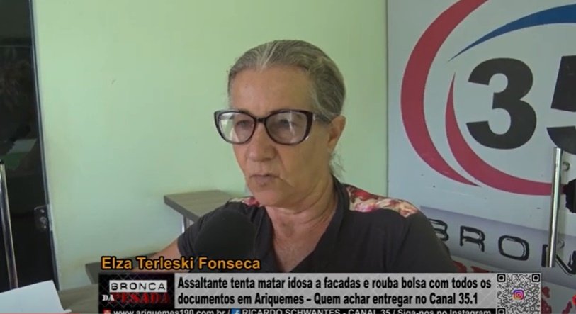 Uma idosa, viveu momentos de terror ao ser abordada por um elemento armado com uma faca. A vitima se deslocava para uma consulta médica, quando o marginal anunciou o roubo, ao tentar convencer o assaltante que não lhe roubasse, acabou sendo atacada a golpes de faca. A idosa só não foi atingida porque se defendeu usando bolsa. Desespera a vitima esteve no Canal 35.1 pede que se alguém encontra a bolsa com os documentos e os medicamentos entregue na TV.