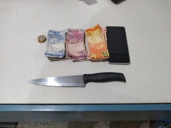 Policiais militares estavam em patrulhamento pelo bairro Setor 04 no momento que um popular informou a direção da fuga de um casal que acabava de ter cometido um roubo. A equipe realizou diligência e localizou os suspeitos em uma bicicleta. Com eles foram encontrados uma faca, utensílio utilizado para cometer o crime, e os objetos da vítima, um aparelho celular e dinheiro em espécie.