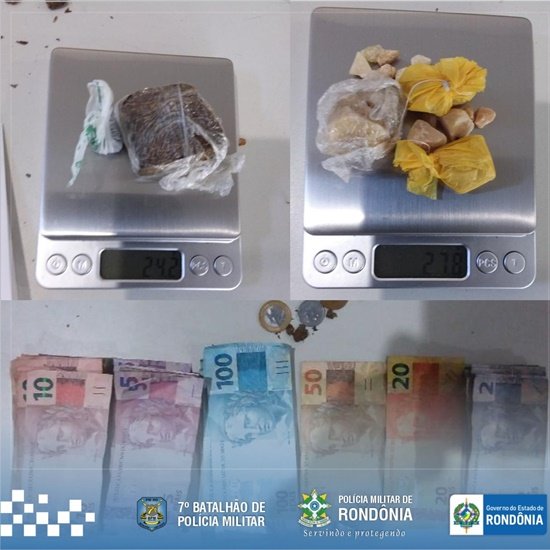 Na residência foram localizadas algumas porções de drogas análogas a crack e maconha e uma bolsa com várias notas de dinheiro, que juntos totalizaram R$ 1.041,25. Na consulta nominal, constatou-se que a proprietária da casa, uma mulher de 58 anos, possui passagem pelo crime de tráfico de drogas e também foi condenada pelo Poder Judiciário do estado do Mato Grosso pelo crime de lesão corporal seguida de morte, bem como estava com a prisão definitiva em aberta, pendente de cumprimento. Diante dos fatos o mandando de prisão foi cumprido.
