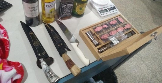 A equipe policial chegou rapidamente ao local e realizou a varredura, porém o suspeito havia fugido e subtraído alguns objetos da residência. O fato foi informado via rede rádio. Minutos depois outra guarnição encontrou o infrator na proximidade do local do furto e todos os objetos furtados, sendo eles uma balança digital, facas artesanais, bebidas, uma caixa com material para drink e um lençol.