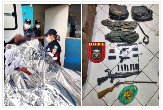 Durante a fuga dos criminosos, foram encontrados Raniel, Rodrigo e Kenedy alvejadose com eles um revólver municiado, e uma espingarda calibre 12, além de uma mochila com várias munições de pistola calibre .40, e uma espingarda que estava dentro do Rio Preto.