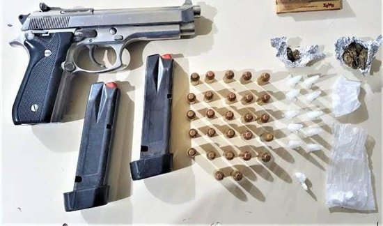 A mulher do acusado foi até o local e muito nervosa queria saber o que estava acontecendo. Na residência do casal, os policiais fizeram buscas e encontraram mais porções de maconha, cocaína e uma pistola calibre .40.