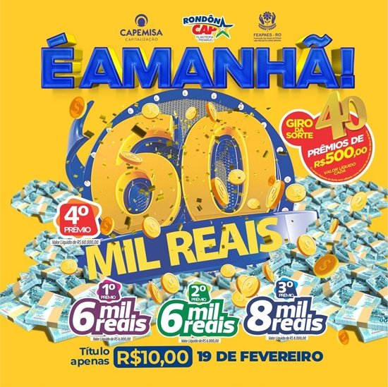 ARIQUEMES: Que tal ganhar 60 mil reais neste domingo? Com o RONDÔNCAP isso é possível!