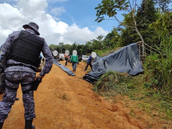 No local, as equipes policiais flagraram várias pessoas montando acampamento e danos na porteira e nas cercas. Não foram localizadas armas. Em diálogo com os invasores, eles alegaram que entraram a terra, pois a Associação a qual eles pertencem havia ganhado na Justiça a propriedade do local.