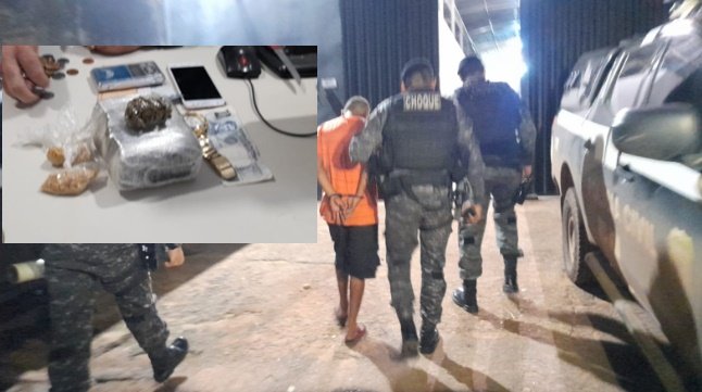 Policiais do Batalhão de Choque da PM prenderam na noite desta sexta-feira (10), um homem de 33 anos por tráfico de drogas no “Beco São João”, região do bairro Cai N’água, centro da capital.