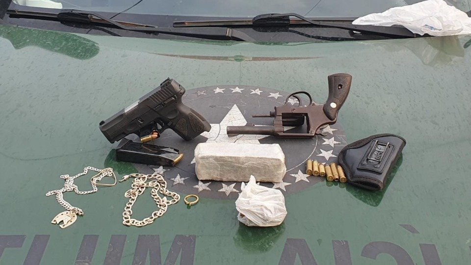 De acordo com as autoridades, foram apreendidas com o suspeito duas armas de fogo municiadas, várias munições, aproximadamente 200 gramas de substância entorpecente, aparentando ser maconha, tipo Skunk, além de uma pequena porção de maconha e outra de cocaína e materiais usados na confecção de entorpecentes para serem comercializados.