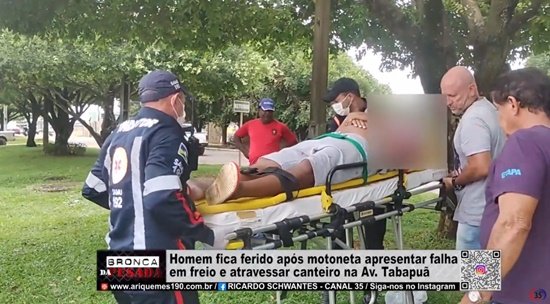 Homem fica ferido após motoneta apresentar falha em freio e atravessar canteiro na Av Tabapuã