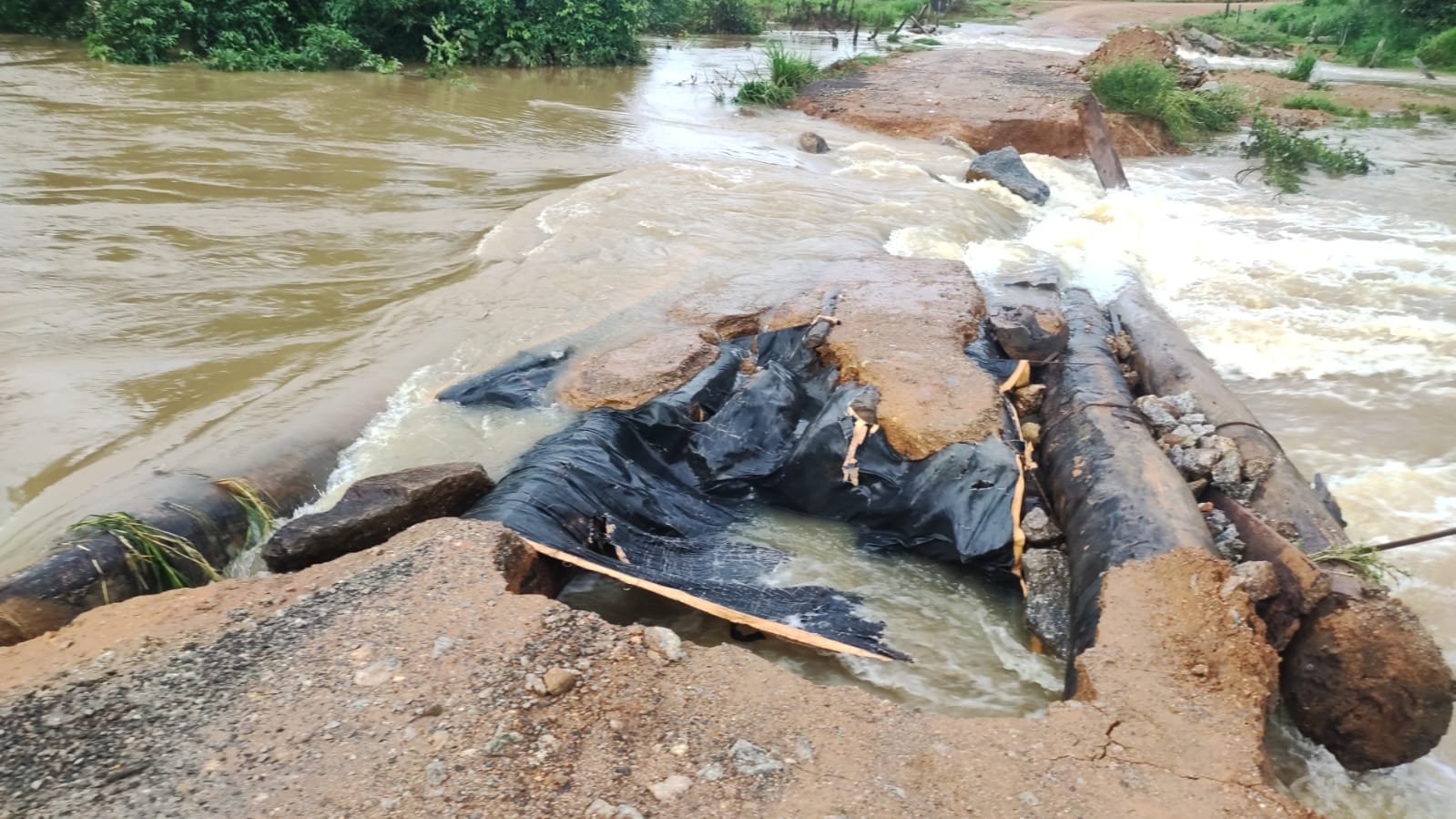 Imagens feitas no local mostram que a passagem de veículos sobre a ponte improvisada com madeira está comprometida. Isso porque o nível do rio subiu gradativamente nas últimas semanas e a água passou por cima da ponte, fazendo a estrutura ceder parcialmente.