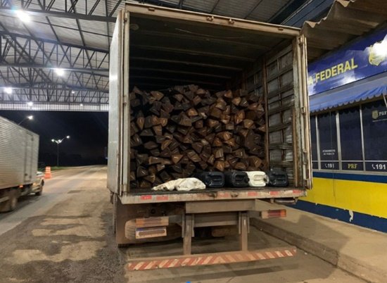 Em procedimento de identificação detalhada, a equipe policial apreendeu lascas da espécie Mezilaurus Itaúba sendo transportada sem os documentos de porte obrigatório. Uma hora depois, no mesmo Km, nossos policiais interceptaram mais um carregamento em que a espécie declarada no documento de origem florestal (DOF) era divergente da que, de fato, estaria sendo transportada.