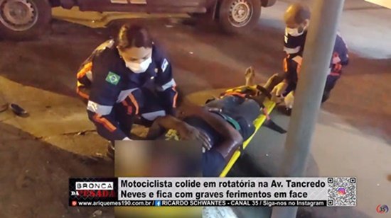 Motociclista colide em rotatória na Av Tancredo Neves e fica com graves ferimentos em face - VÍDEO