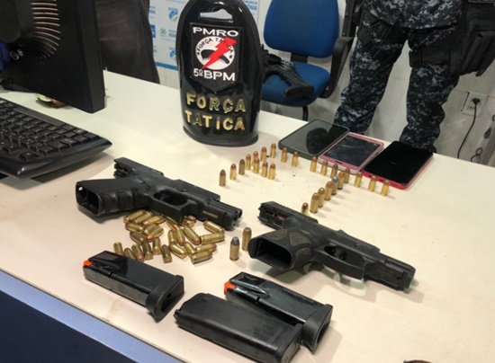 Três suspeitos maiores de idade e membros de uma facção criminosa denominada “Comando Vermelho”, foram presos na noite de quinta-feira (13), pelo crime de porte ilegal de arma de fogo ao serem flagrados com duas pistolas na Rua Beatriz no bairro Teixeirão, zona leste de Porto Velho.
