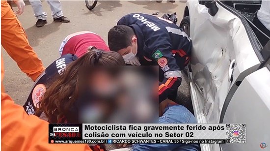 Motociclista fica gravemente ferido após colisão com veículo no Setor 02