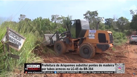 Prefeitura de Ariquemes substitui pontes de madeira por tubos armcos na LC 45 da BR 364