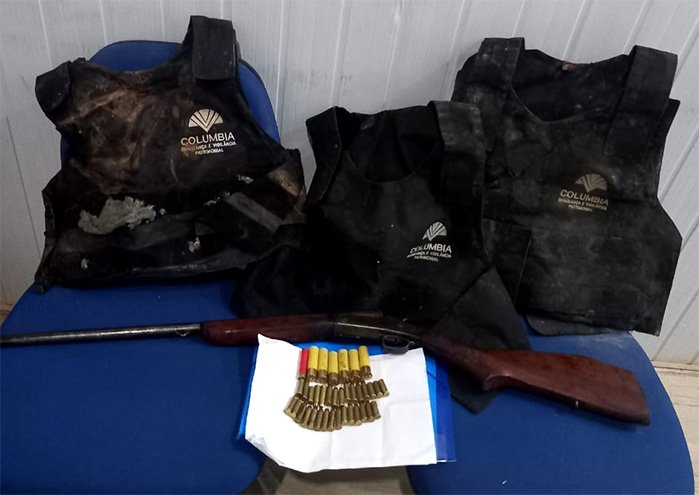 Durante as buscas, foram encontradas uma espingarda calibre 20, 6 cartuchos de espingarda calibre 20, um cartucho de espingarda calibre 36, 22 munições, sendo vinte 21 intactas, 8 cápsulas de munição calibre 38, além de três capas de colete balístico pertencente a uma empresa de segurança.