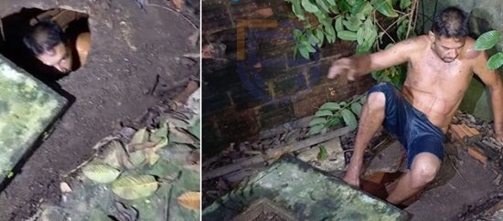 Um dos presos, ainda tentou se esconder dos policiais, entrando em uma fossa, mas logo foi localizado e preso.