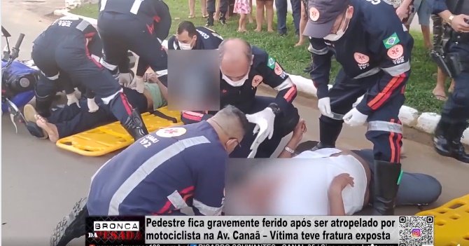 Pedestre fica gravemente ferido após ser atropelado por motociclista na Av. Canaã - Vídeo