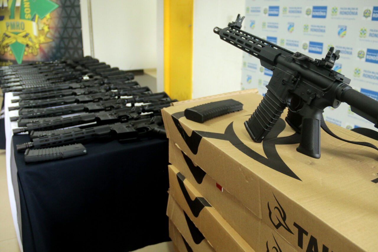 O reforço do armamento para o Batalhão da Polícia Ambiental – BPA e o Batalhão da Polícia de Choque – BPChoque ocorreu nesta sexta-feira, com a entrega de 23 novas armas, em solenidade realizada no Comando da Polícia Militar. A iniciativa faz parte do compromisso do Governo de Rondônia, por meio da Secretaria de Estado da Segurança, Defesa e Cidadania – Sesdec, em assegurar condições para fortalecer a proteção da sociedade com o avanço do enfrentamento à criminalidade.