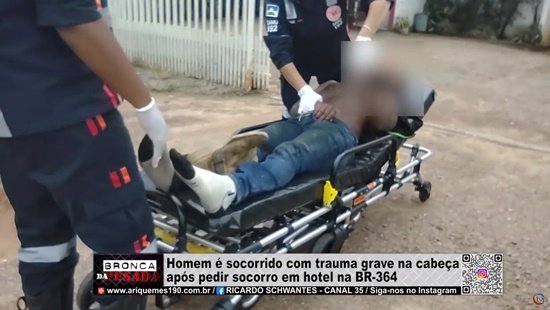 Homem é socorrido com trauma grave na cabeça após pedir socorro em hotel na BR-364 - VÍDEO