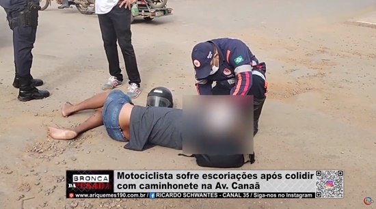 Motociclista sofre escoriações após colidir com caminhonete na Av. Canaã - VÍDEO