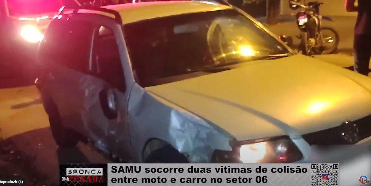 SAMU socorre duas vitimas de colisão entre moto e carro no Setor 06 - Vídeo