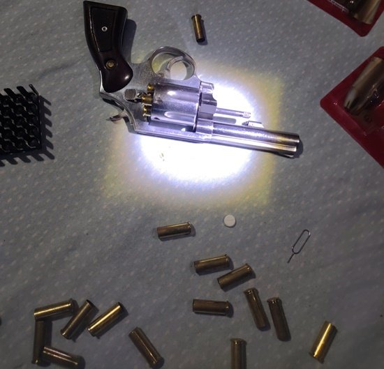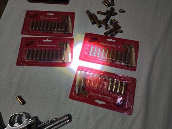 Nas buscas foram apreendidos um revólver calibre .38 municiado com 6 munições, além de 36 munições intactas e cápsulas deflagradas de igual calibre.