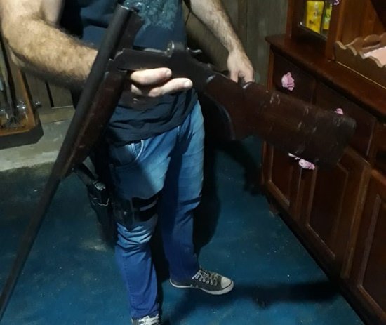 Também foi apreendido uma espingarda calibre .32 e uma munição intacta.