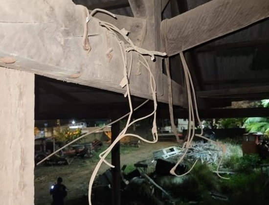 Perante a situação, os policiais militares fizeram uma verificação no local, onde foi avistado um homem deitado no chão fingindo estar dormindo. Ao questionar o indivíduo, ele disse que estaria apenas dormindo. Ao continuar a verificação pelo local, foram localizados fios de energia no solo que haviam acabado de serem cortados.