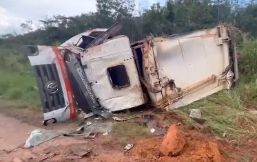 Um grave acidente com capotamento de um caminhão do lixo resultou na morte de um homem e deixou outro ferido nesta quinta-feira (25), na altura do km150 da BR-364, próximo de Nova Mutum Paraná em Porto Velho.