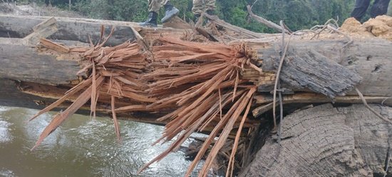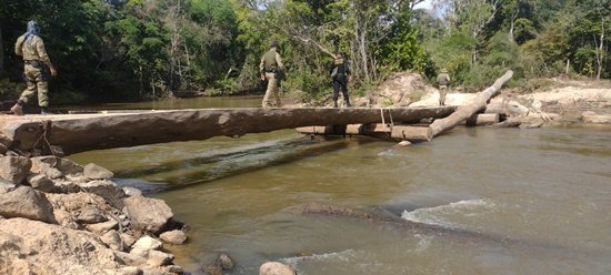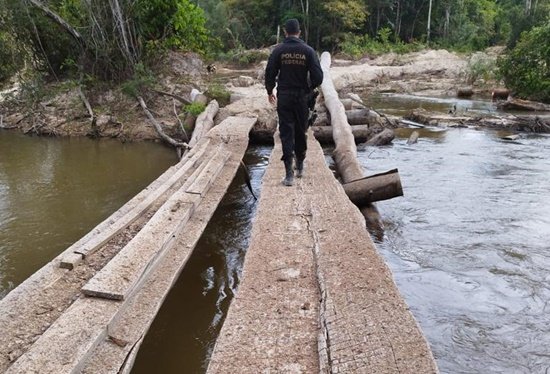 Durante os trabalhos, as equipes policiais destruíram uma ponte utilizada pelos invasores da Terra Indígena, a qual dava acesso à uma área de exploração ilegal de ouro (garimpo).