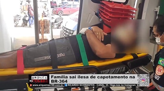 Família sai ilesa de capotamento na BR-364 - VÍDEO