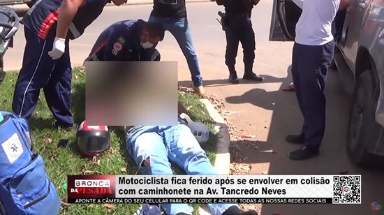 Motociclista fica ferido após se envolver em colisão com caminhonete na Av. Tancredo Neves - VÍDEO
