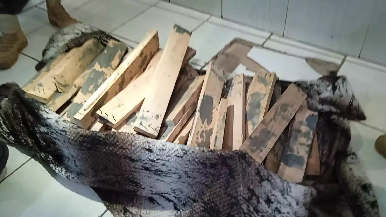 Após o suspeito demonstrar nervosismo, foi realizada buscas na bagagem do passageiro e encontrada dentro da madeira de caixotes, várias porções de cocaína escondidas dentro da madeira.